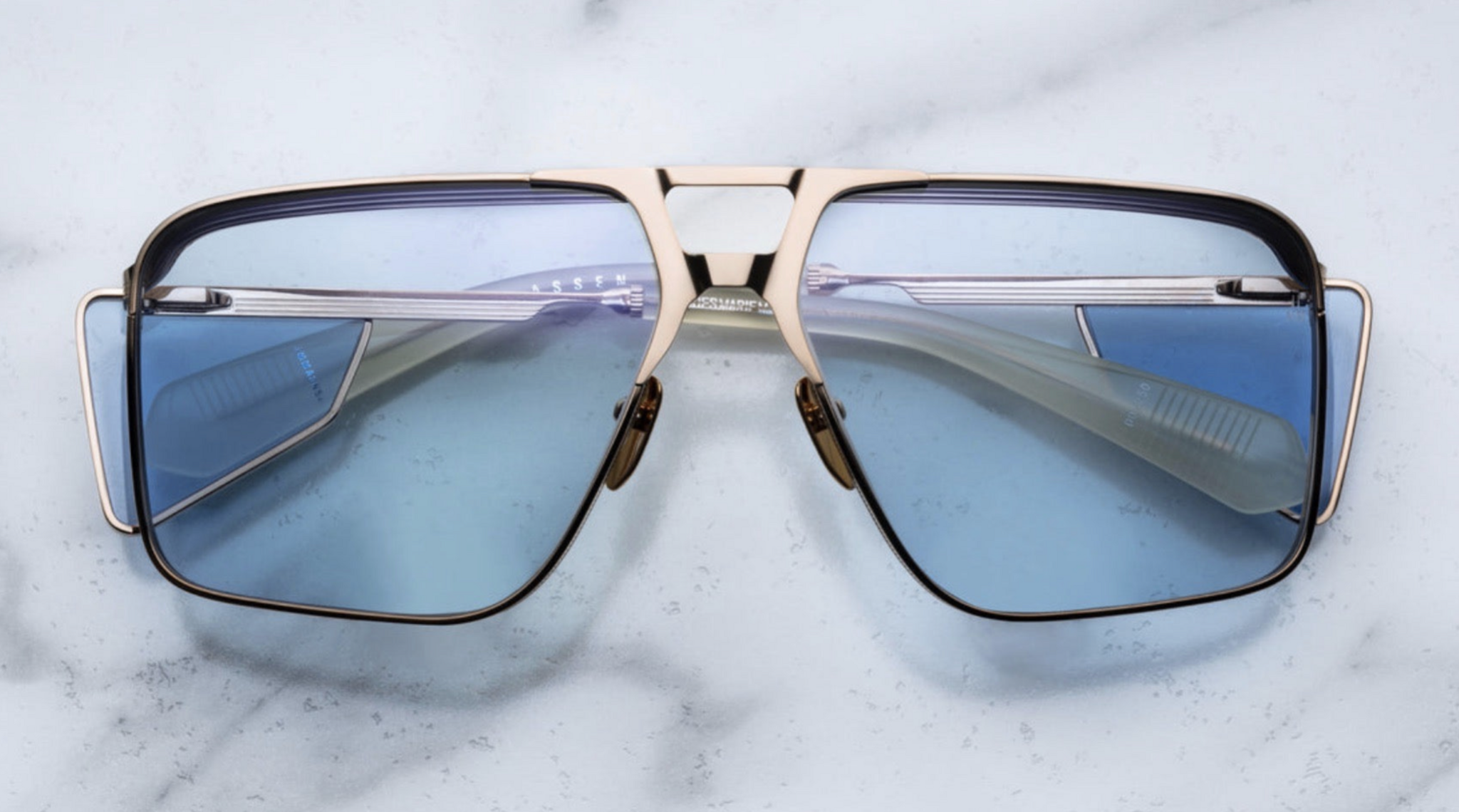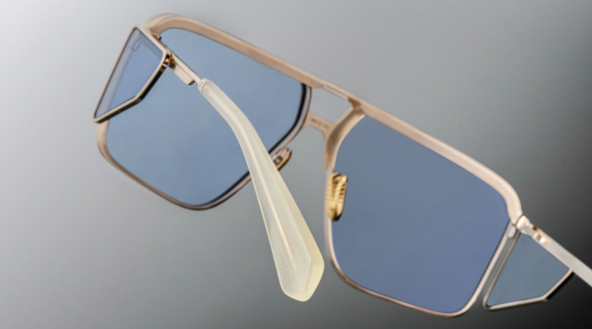 Serious and sleek titanium navigators, handcrafted in Japan. Featuring bold double-bridge, new monoblock hinges, hairline engraved temple, lensed eyeshields, and acetate temple sleeves.