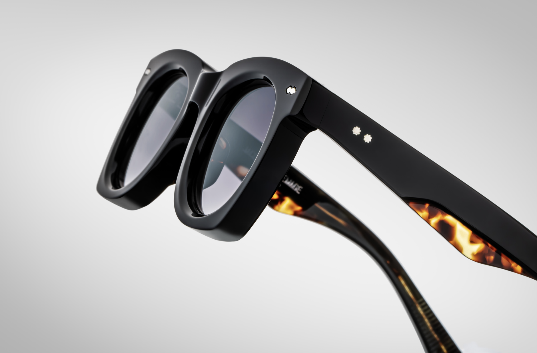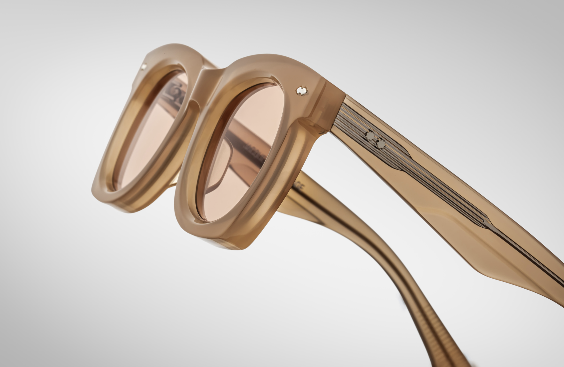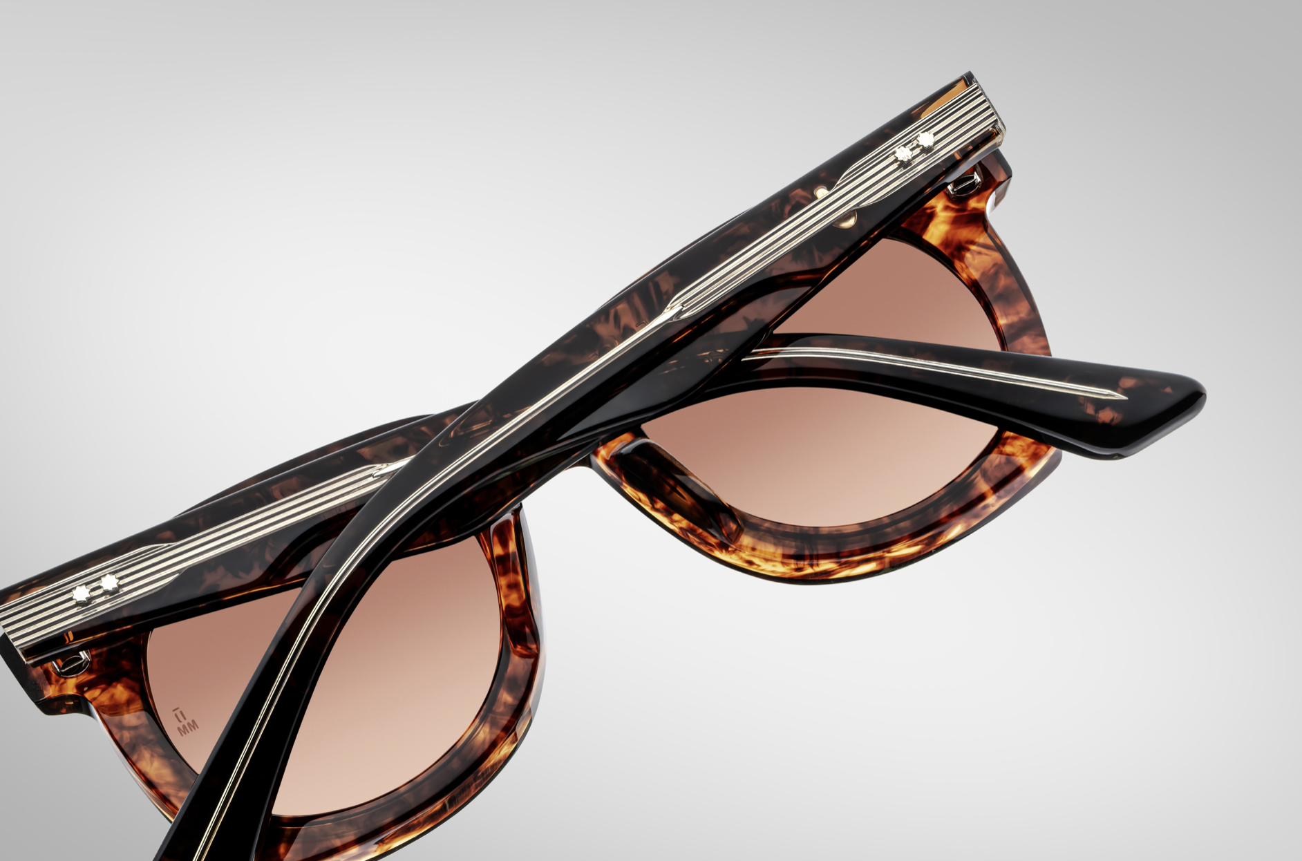 - 10MM CURED CELLULOSE ACETATE FRAME WITH CUSTOM DOUBLE-LAMINATED ACETATE TEMPLES FEATURING PRECIOUS METAL HARDWARE