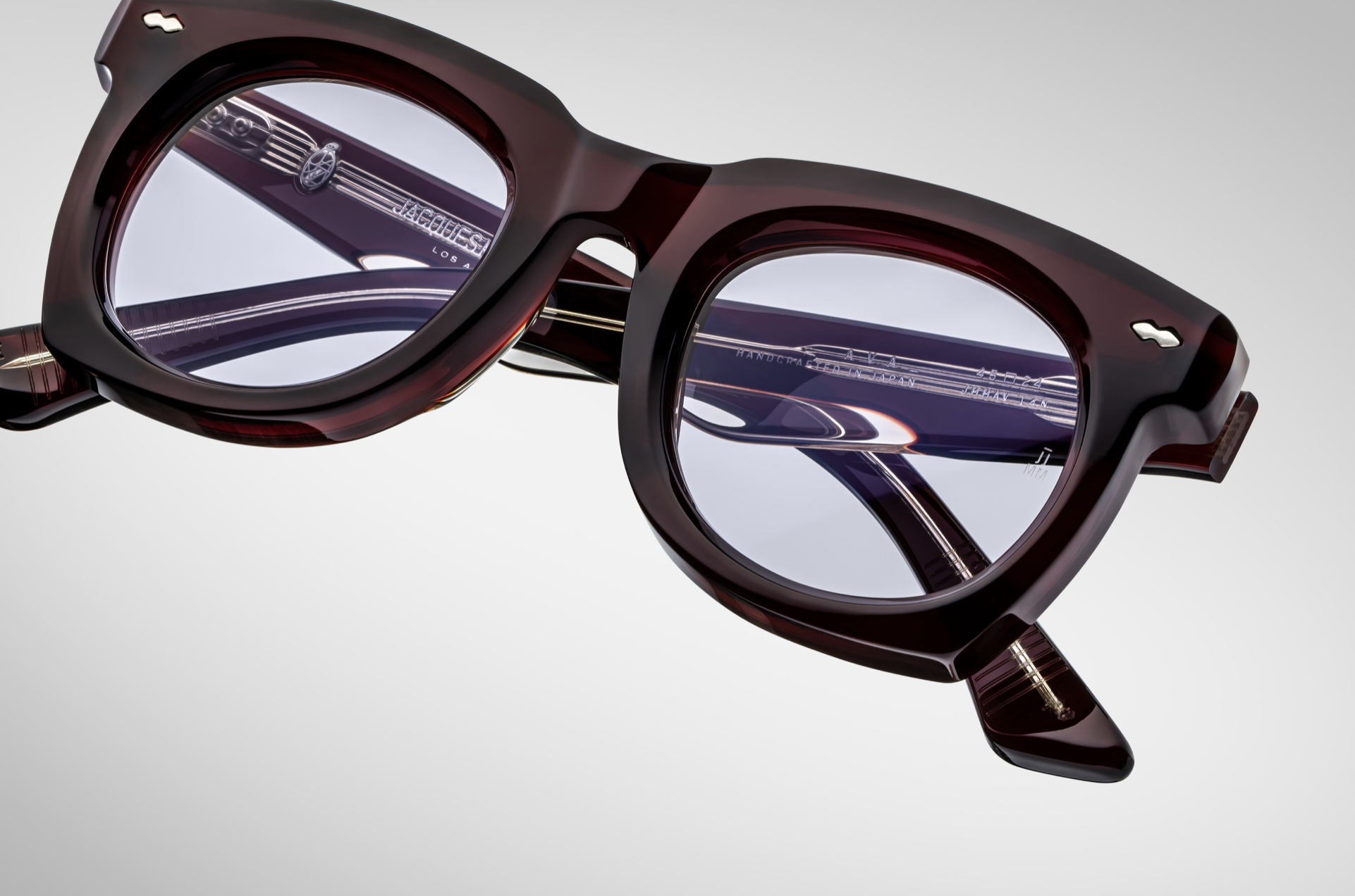 Sleek '50s inspired glasses with graceful lines, signature double-arrowhead front pins, and custom double-laminated temples with refined 'Lever' wirecore.