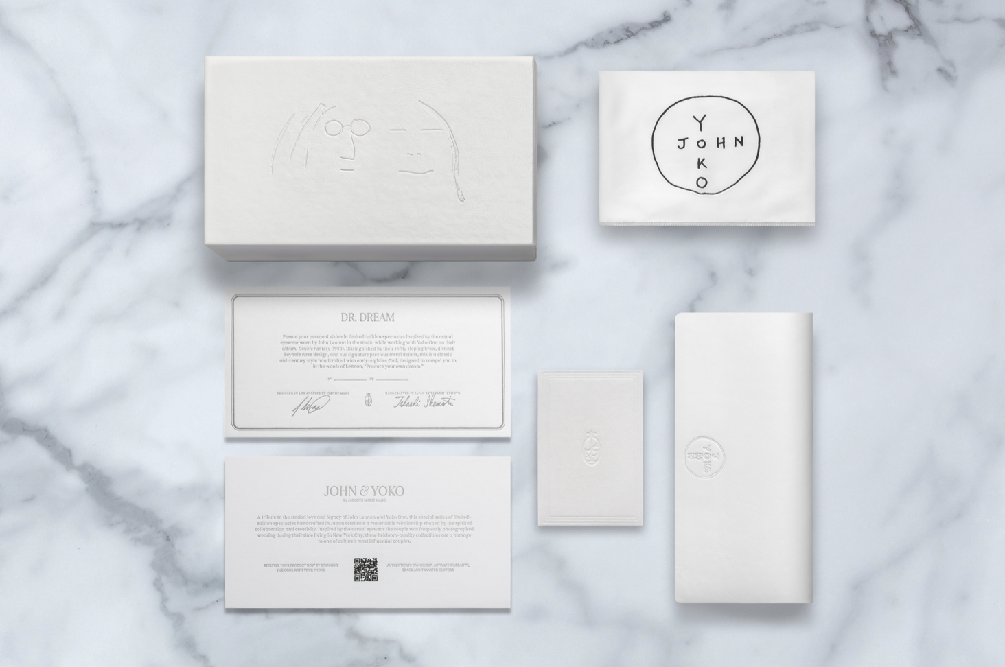 A tribute to the storied love and legacy of John Lennon and Yoko Ono, this special series of limited-edition spectacles handcrafted in Japan celebrate a remarkable relationship shaped by the spirit of collaboration and creativity. The DR. DREAM are inspired by the actual eyewear worn by John Lennon in the studio while working with Yoko Ono on their fifth collaborative album, Double Fantasy (1980). Distinguished by their softly sloping brow, distinct keyhole nose design, and our signature precious metal details, this is a classic mid-century style handcrafted with early-eighties cool, designed to compel you to, in the words of Lennon, “Produce your own dream.”