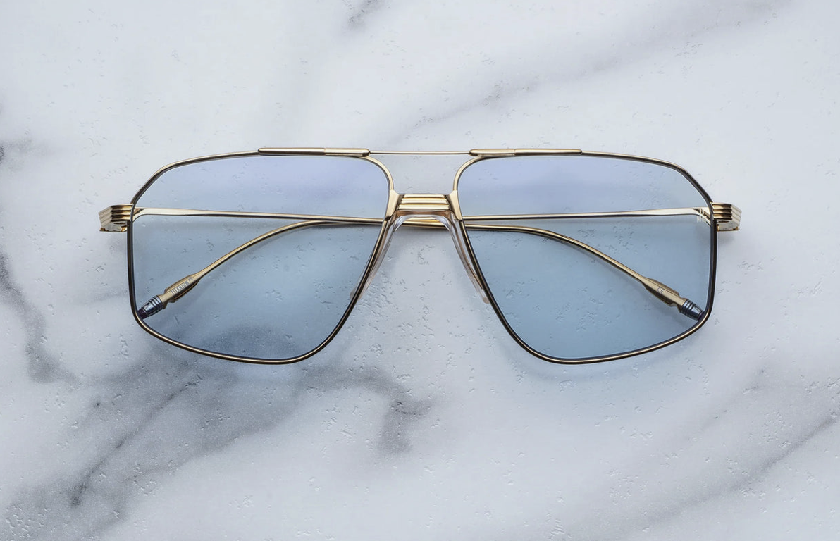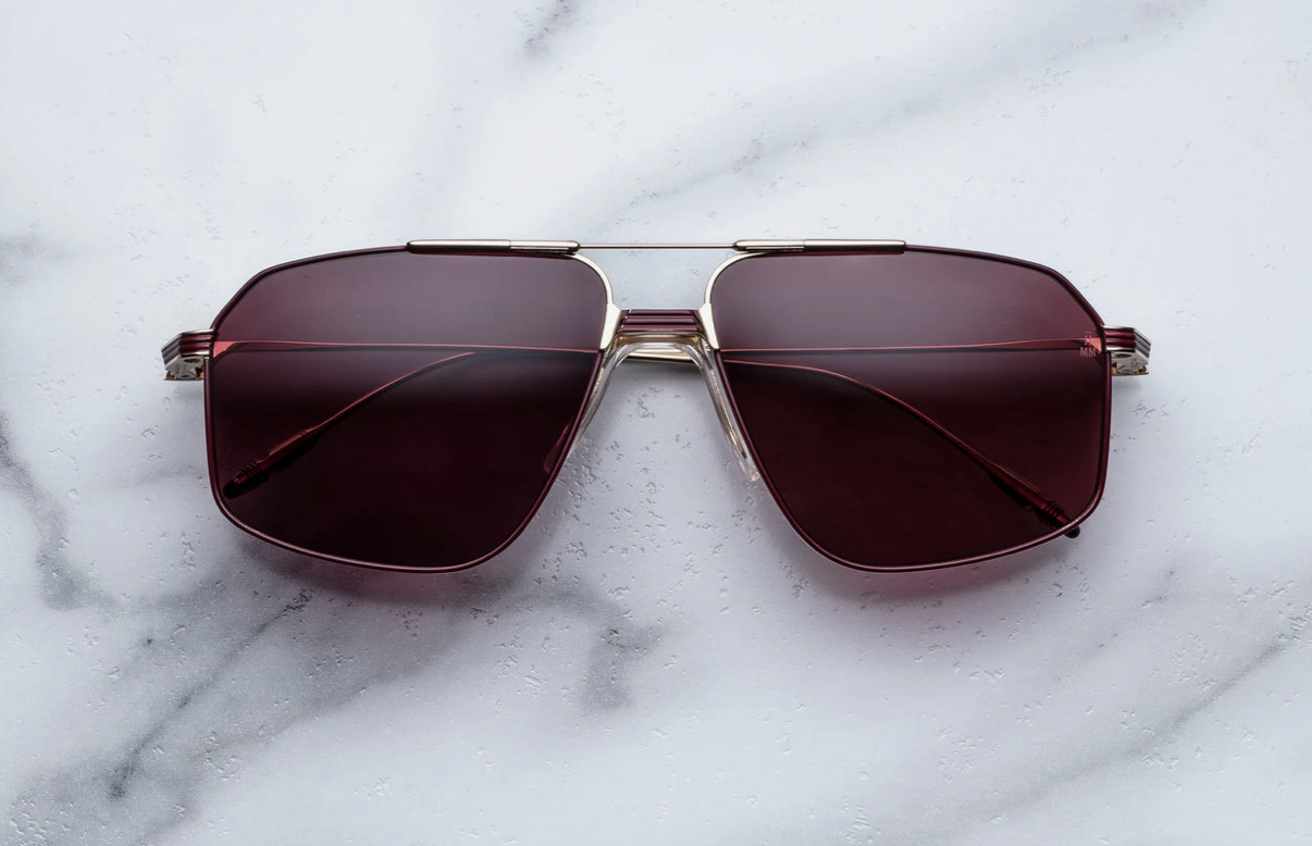 Oversized, late-'70s-inspired titanium aviators, featuring sculptural Art Deco-inspired bridge and brow bar, monoblock hinges, and our signature hand-painted epoxy temple tips.