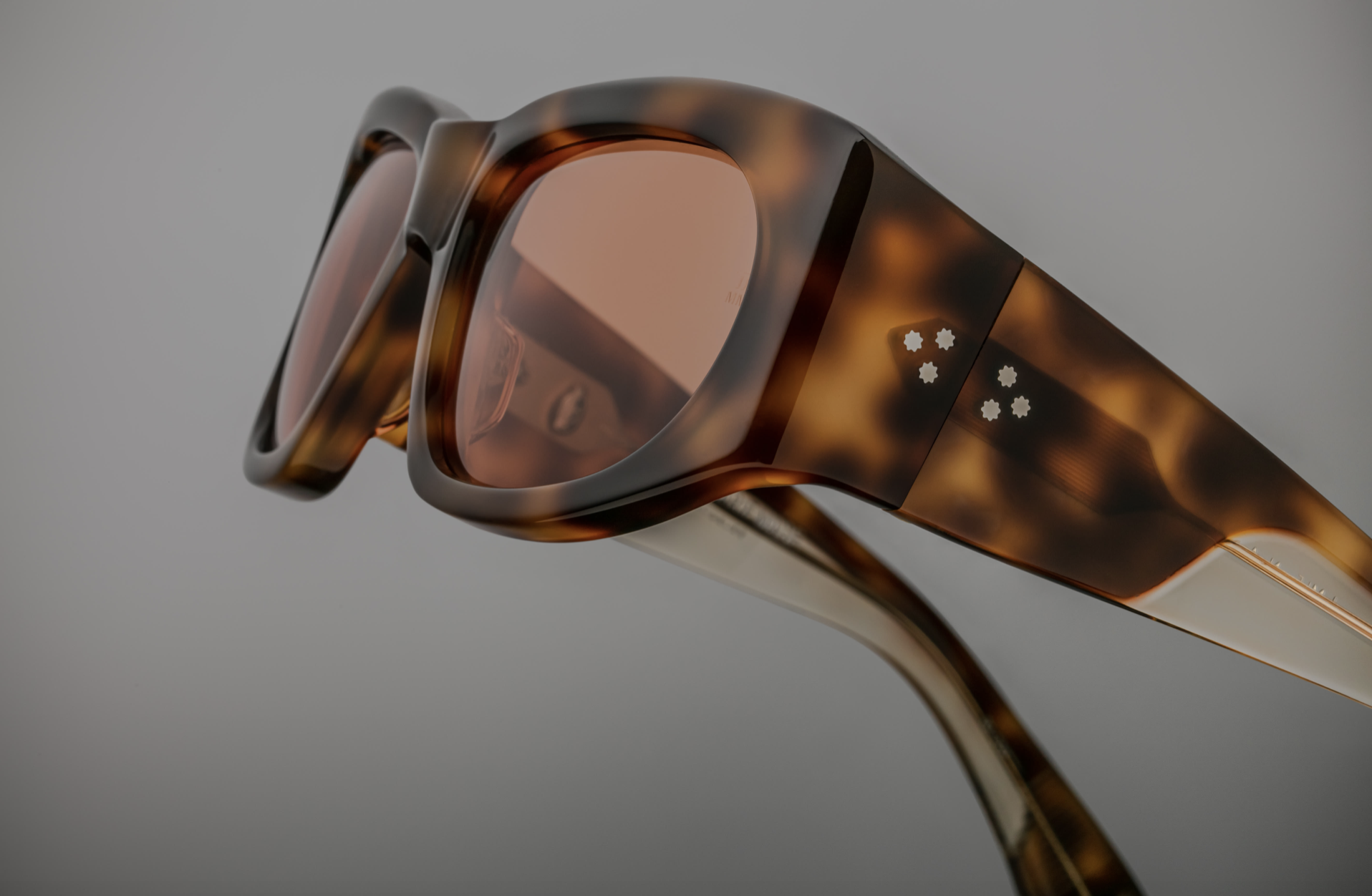 Glamorous ‘90s-inspired cat-eye with subtle wrap-around, featuring sculptural volumes and wirecore temples with signature hairline-engraved details.