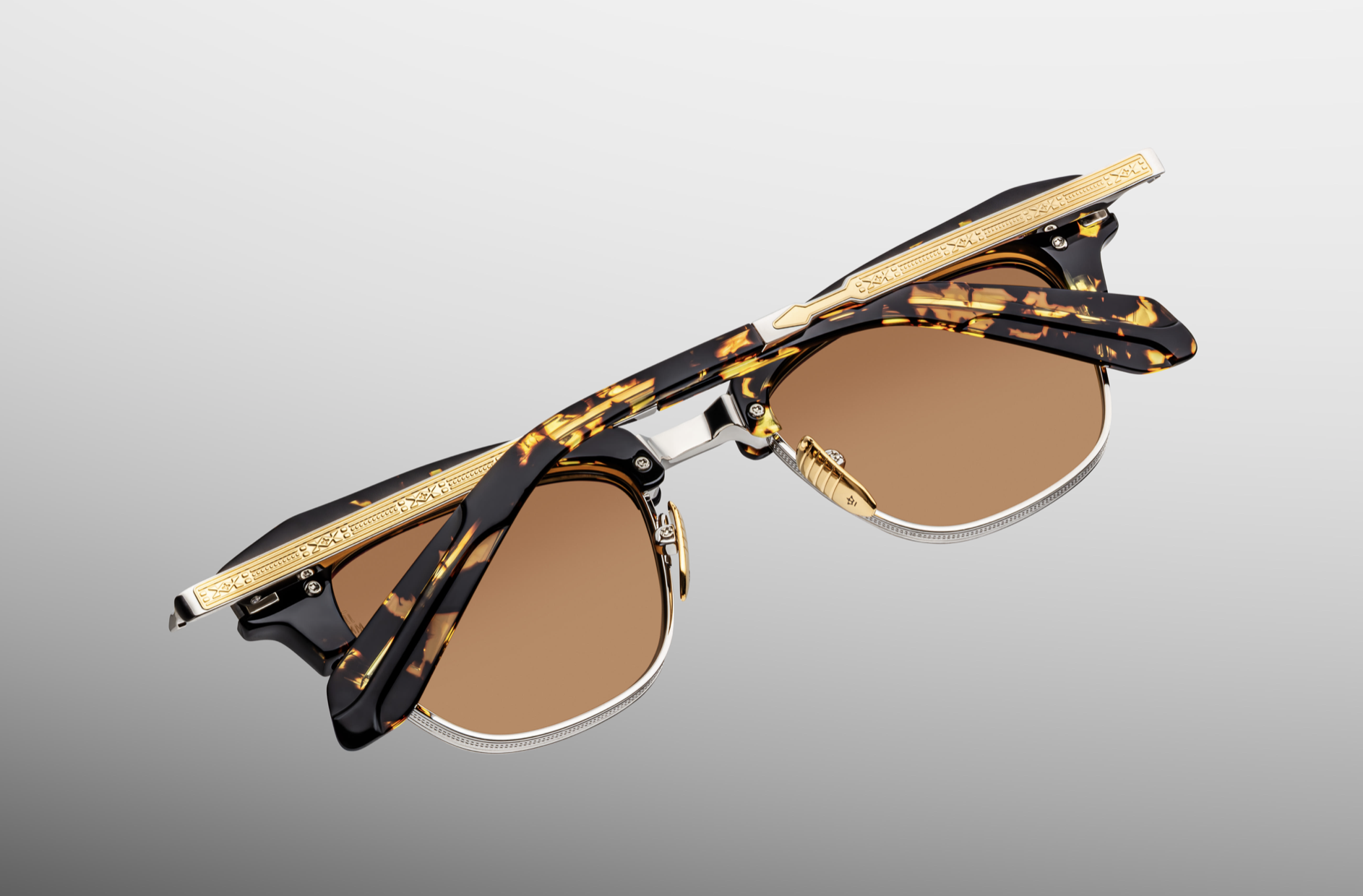 Stare down even the most obstinate of existential philosophies in this reimagined expression of a style originally released in 2019, classic ’50s-inspired spectacles featuring a sculptural acetate brow complemented by 4mm titanium eye rims with refined hairline details, a new bridge with dual-tone embellishments, and titanium temples with unique arrowhead motif and sculptural acetate temple tips.